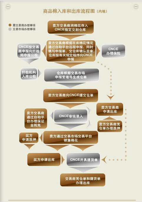 右图为全国棉花交易市场的商品棉入库和出库流程,欢迎广大棉商朋友参与,江苏盛高竭诚为您服务